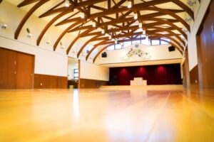 2019年4月より守山市の保育所民営化事業として学園が運営を開始しました。 園舎前に広がる園庭には芝生が繁り、0歳児から5歳児までが自然な交流をもちながら伸び伸びとあそぶ開放的な空間となっています。 2階のホールは光の屈折により虹が壁や床に映し出され、子どもたちの興味や好奇心を掻き立て、アーチ型の梁がヴォーリズ建築の落ち着いた雰囲気をかもしだしています。