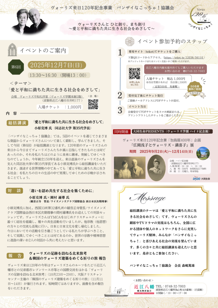 - 会 場 ヴォーリズ平和礼拝堂(ヴォーリズ学園本館5階)