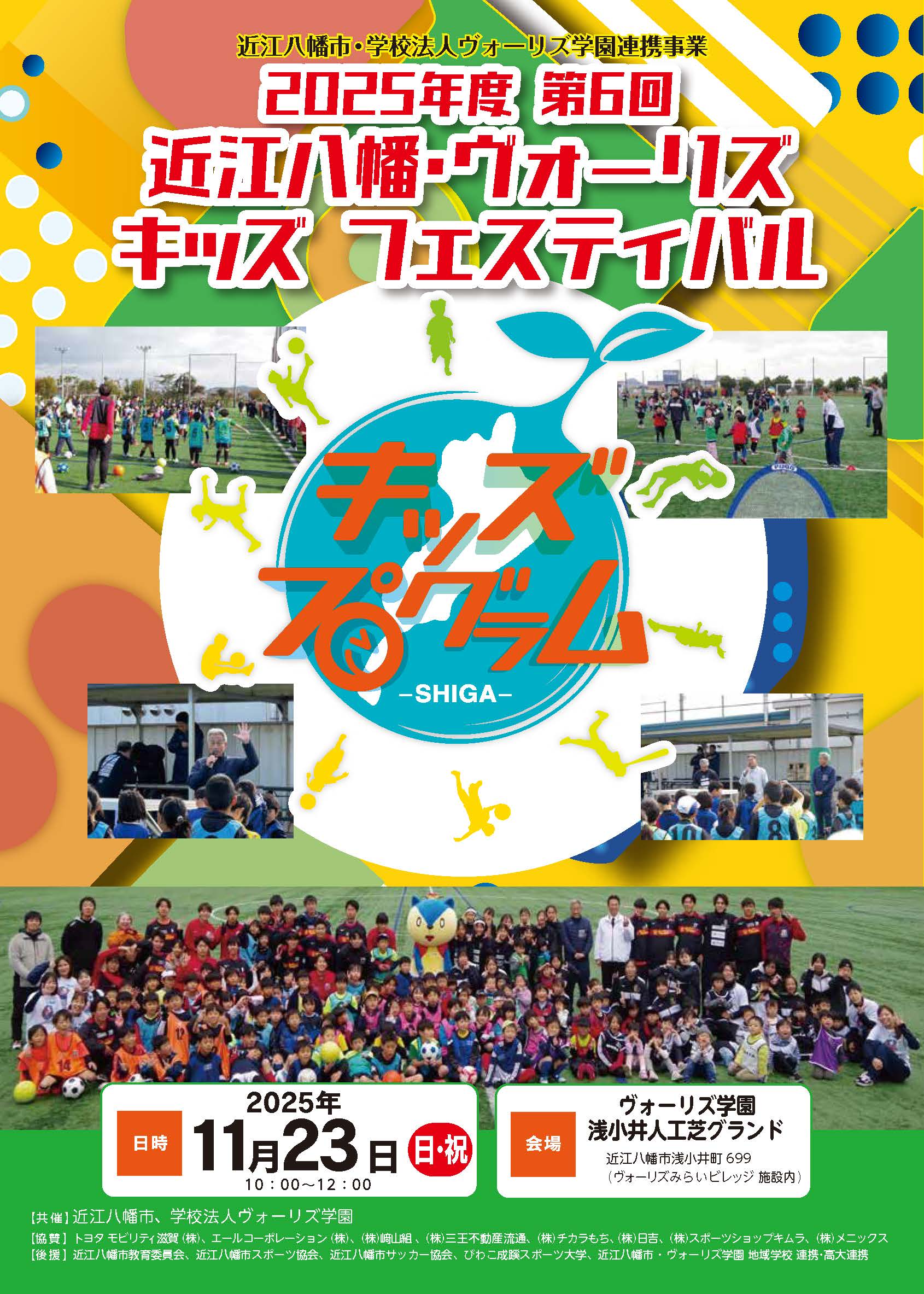 びわこ成蹊スポーツ大学のキッズインストラクターとヴォーリズ学園男女サッカー部のキッズリーダーと共に一緒に楽しい運動あそびを愉しんでください。
