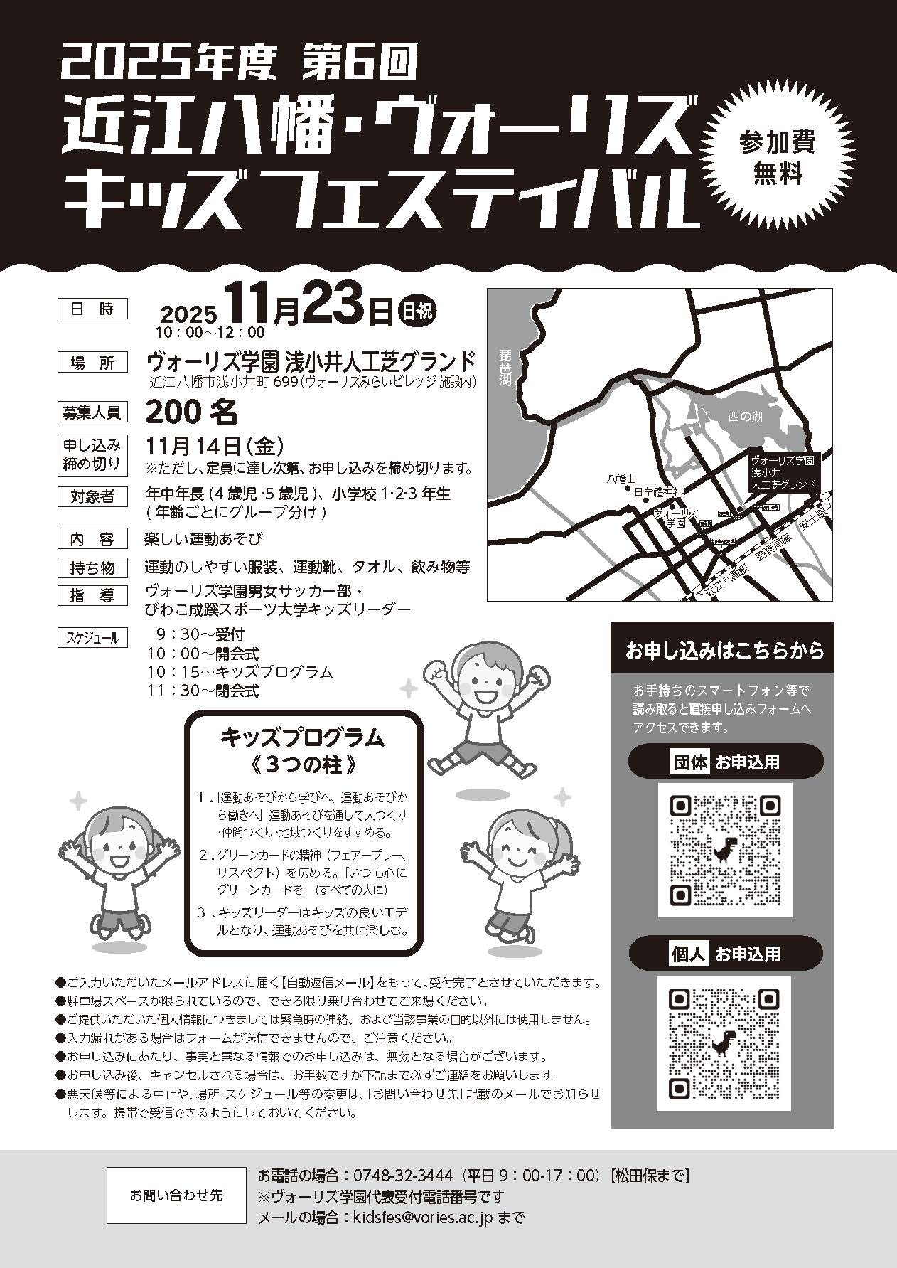 第6回近江八幡市・学校法人ヴォーリズ学園連携事業としてキッズフェステイバルを開催します。