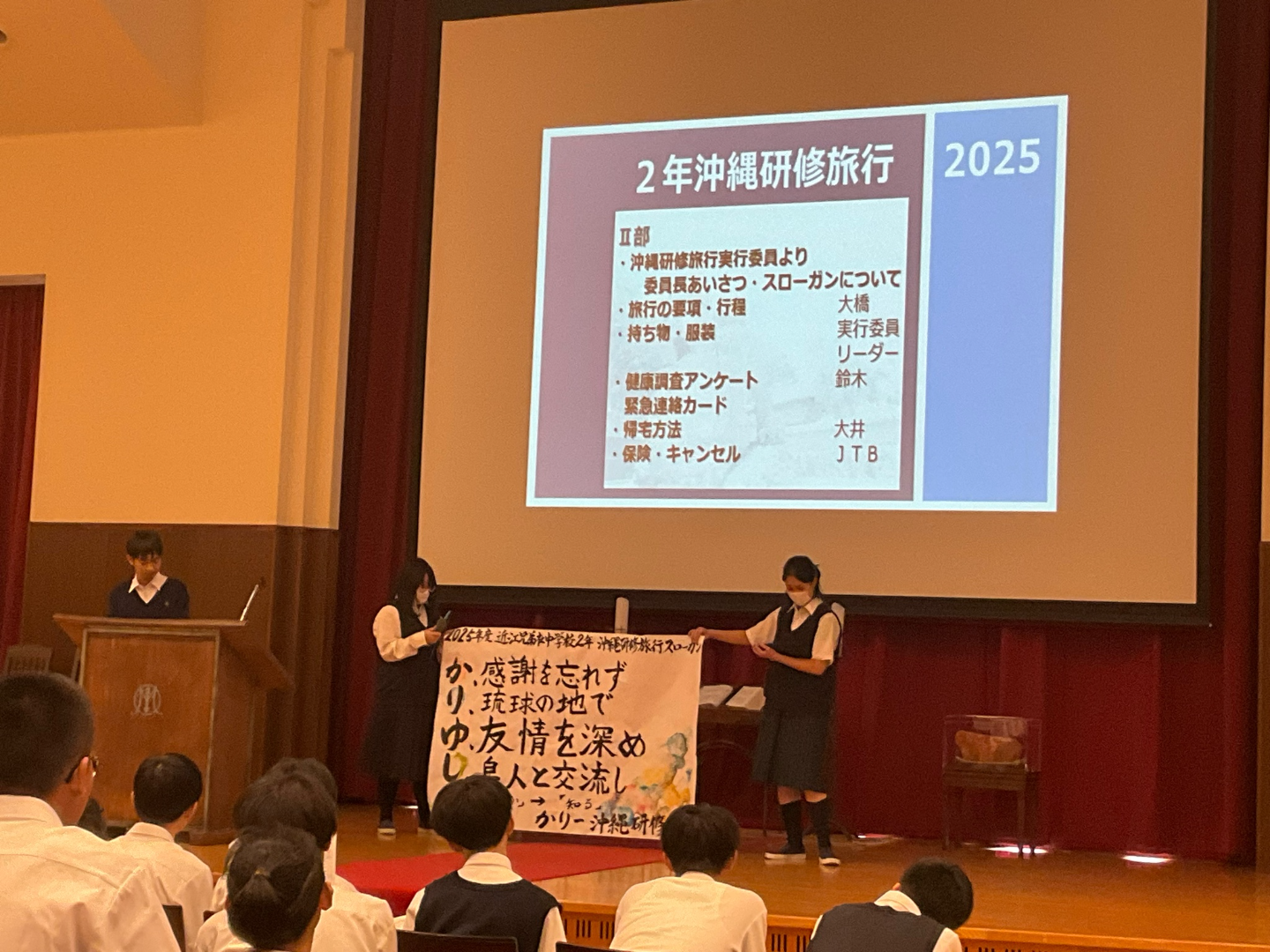 9/24(水)、1年生は京都研修旅行、2年生は沖縄研修旅行の説明会を行いました。生徒…