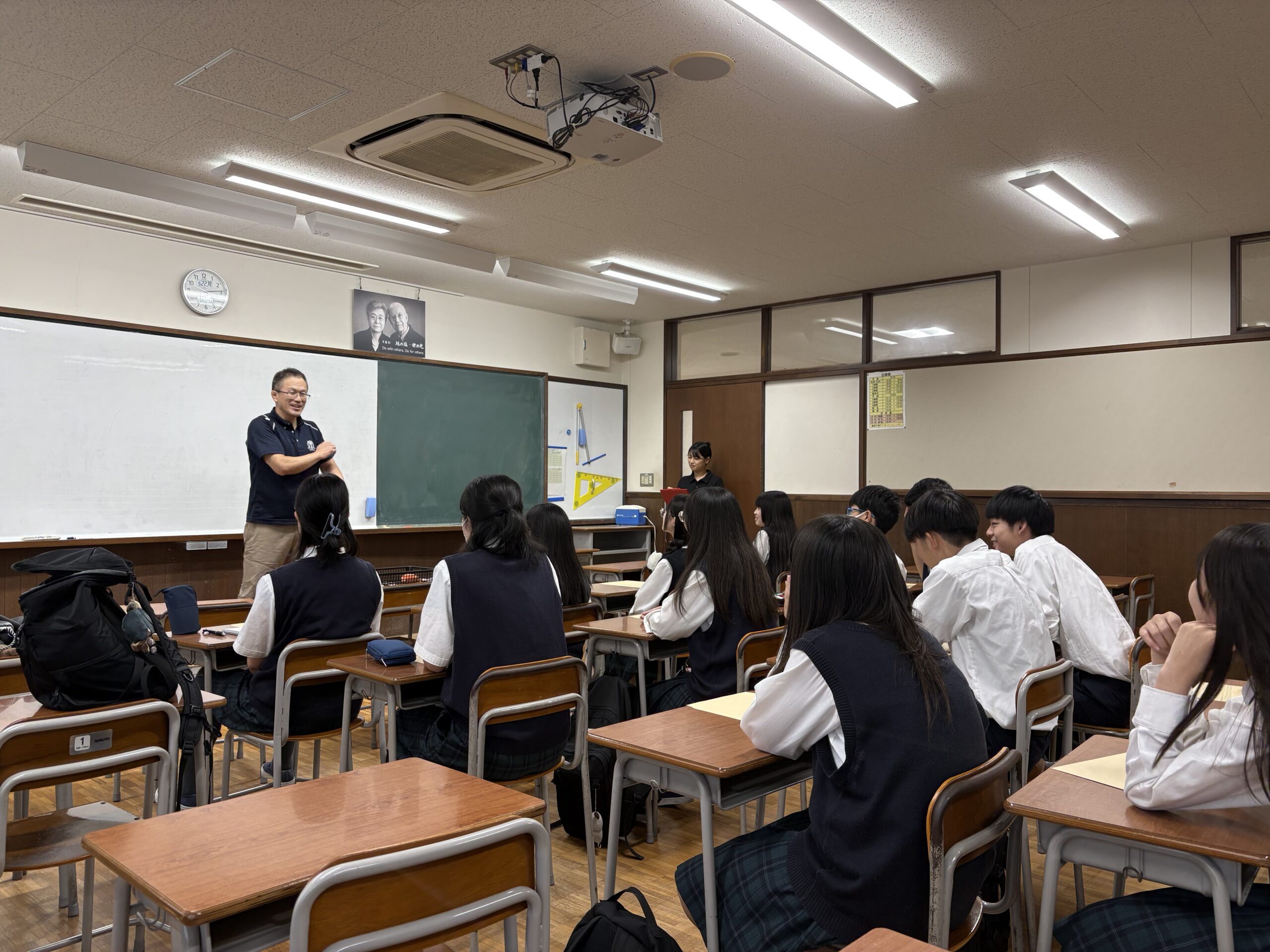 後期実習生として卒業生が戻ってきてくれています。懐かしい中学生時代を思い出しながらも…