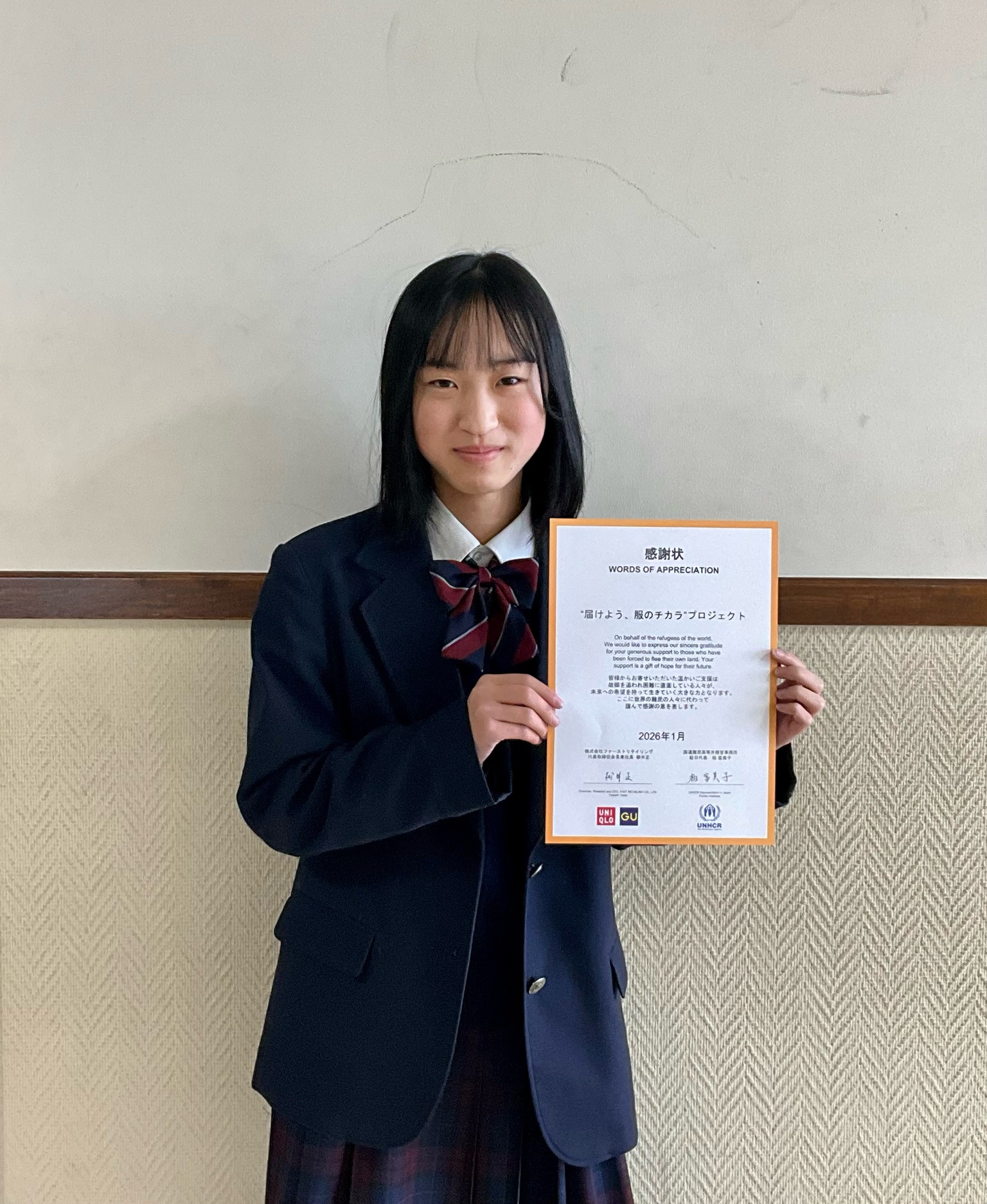 1/30(金)、本校では、毎年、「”届けよう、服のチカラ”プロジェクト」に参加をして…