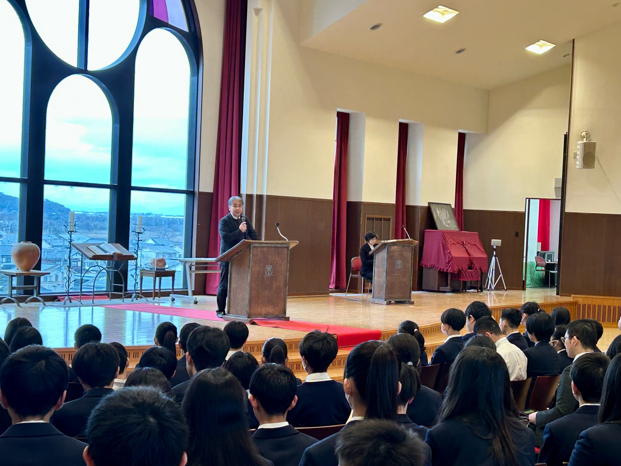 2月20日(金)今年度最後の生徒会礼拝が行われました。3年生からは友だちの大切さにつ…
