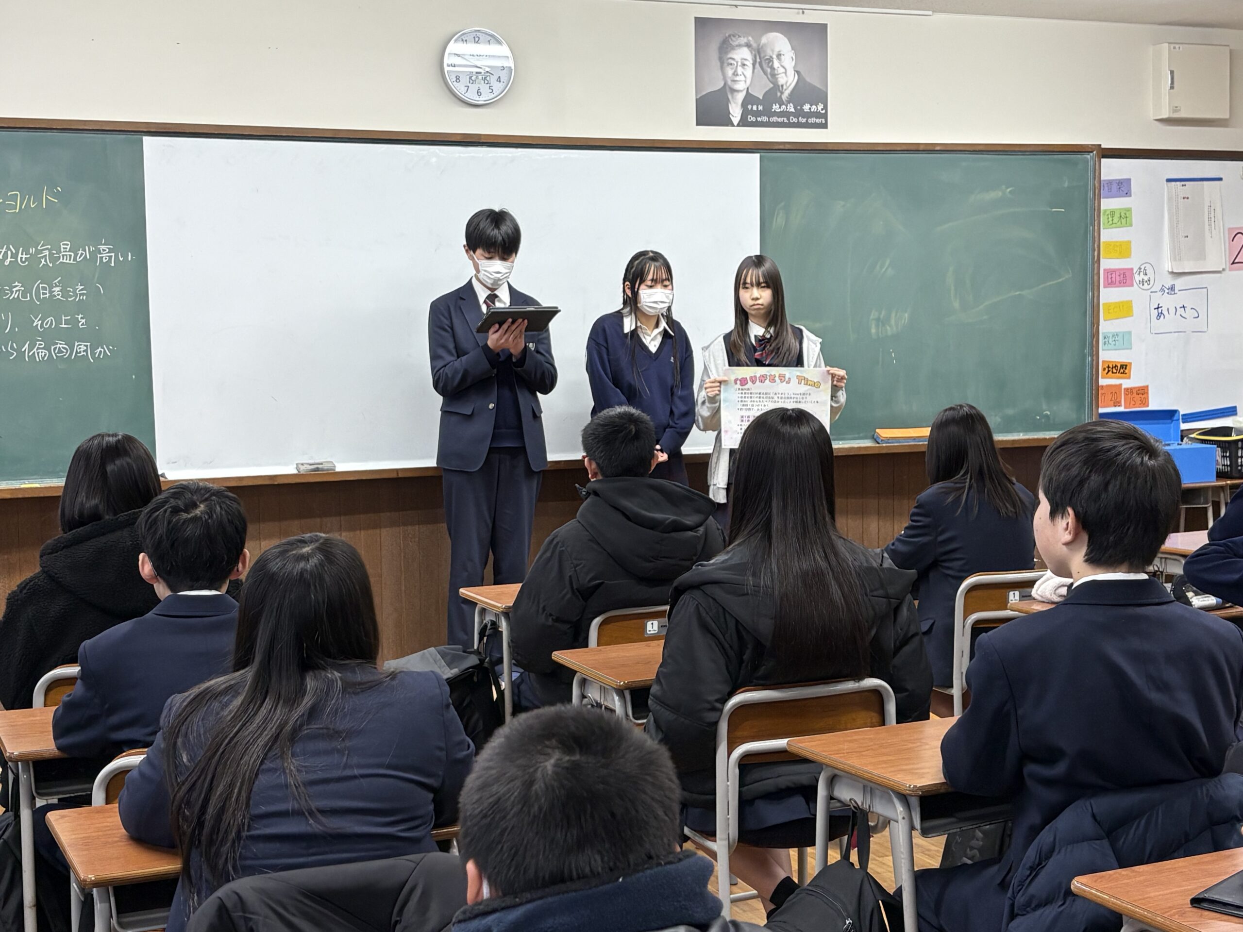 1月26日(月)の終礼で生徒会企画の「ありがとうTime」の説明がありました。この企…