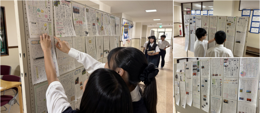 9/19(金)、1年生が夏休みに作成した京都に関する新聞を掲示しました。