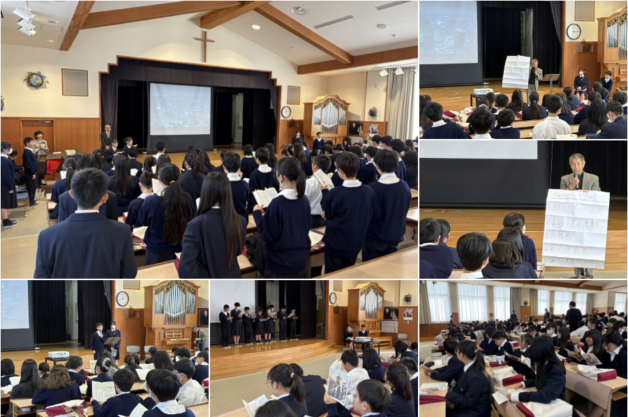初めに学年で礼拝を行い、ハイド記念館におられる山本先生にヴォーリズ先生についてお話をしていただきました。