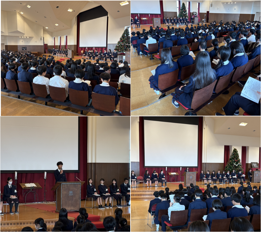 立候補をした生徒は全校生徒の前で一人ずつスピーチを行い、公約の説明や自身の魅力などを話しました。