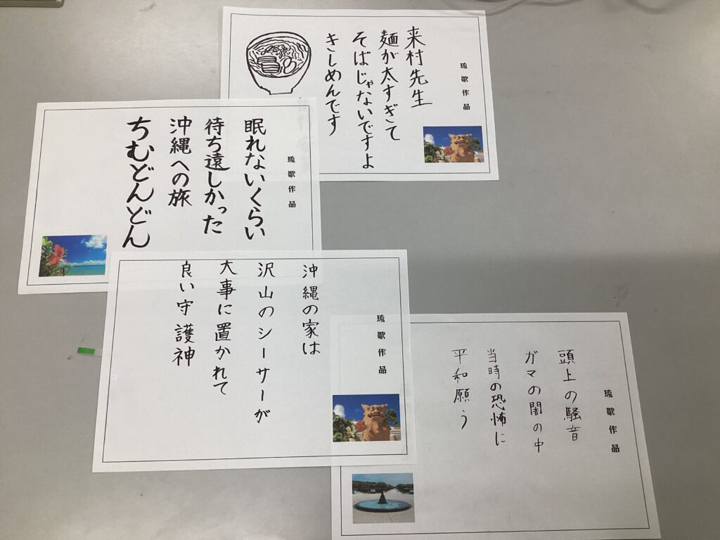 普段のリズムと違うので苦戦しながらも、沖縄研修旅行での思い出や学んだことを織り込んで考えました。