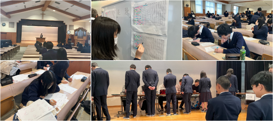最終回の今日は、英語・数学のドリルに取り組みました。1枚クリアするごとに印をつけ、友人と速さを競う姿があちこちで見られました。制限時間内にすべての問題をクリアした人の姿も!最後は、各クラスの代表者が高校入学後の目標についてスピーチをしました。