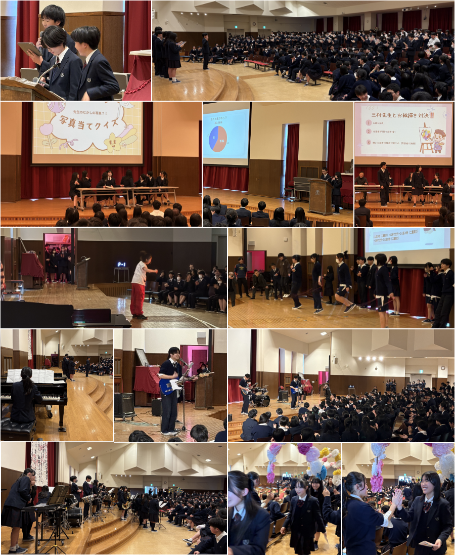 中でも有志によるパフォーマンス甲子園では、キレキレのダンスからバンド演奏、漫才など1・2年生も参加し、三年生に喜んでもらいながらも感謝のことばが述べられました。