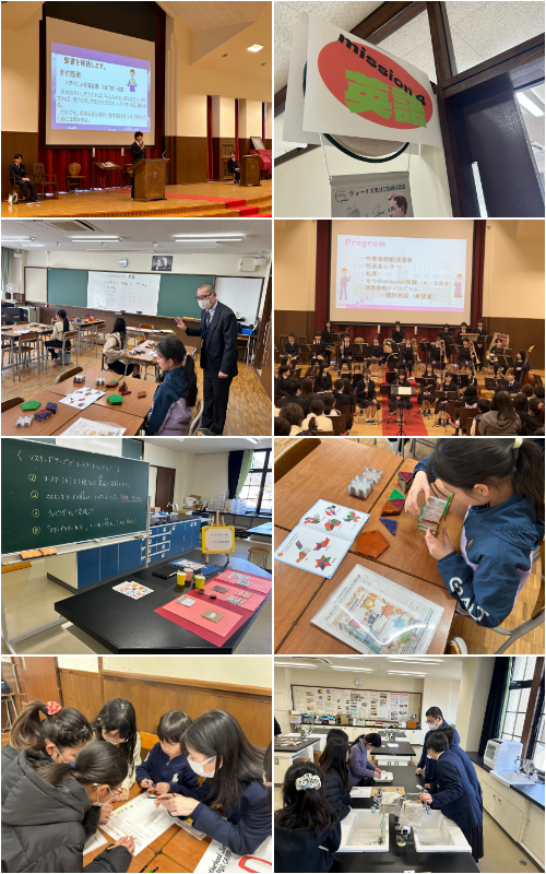 3月21日(土)、小学生4・5年生対象のプレオープンキャンパスを実施しました。吹奏楽部による歓迎演奏、校長あいさつ、生徒会役員による礼拝のあと、児童のみなさんには6つの教科の「ミッション」に挑戦してもらいました。はじめて出会った仲間、そして中学生の先輩や教員との交流を楽しみながらミッションクリアを目指します。実際の教室で授業の雰囲気に触れることで、中学校生活を少し身近に感じてもらうことができたでしょうか?保護者の方には、募集要項の説明の後、中学2年生による探究学習のプレゼンテーションを聞いていただきました。