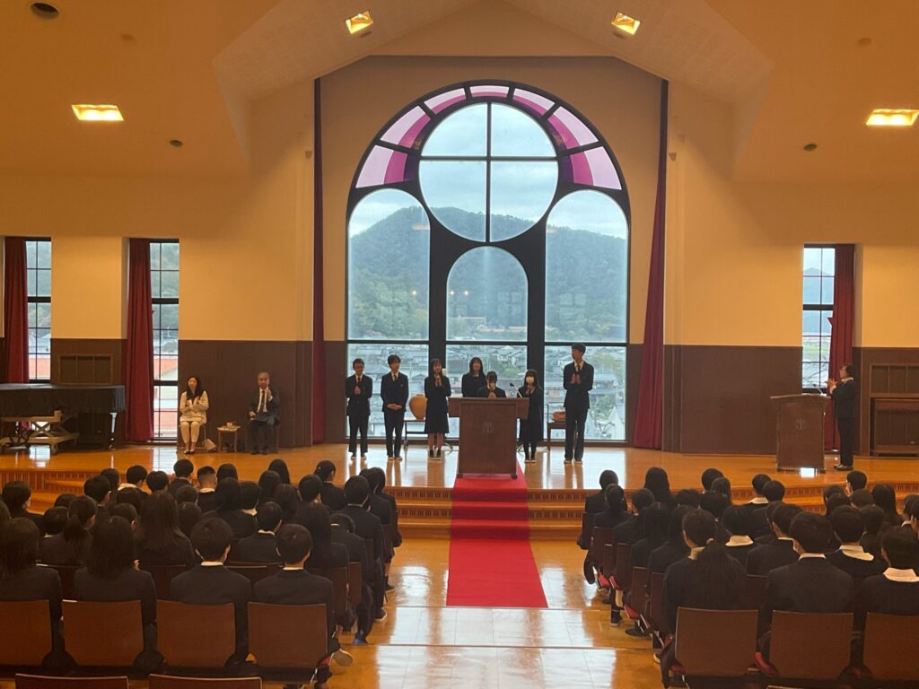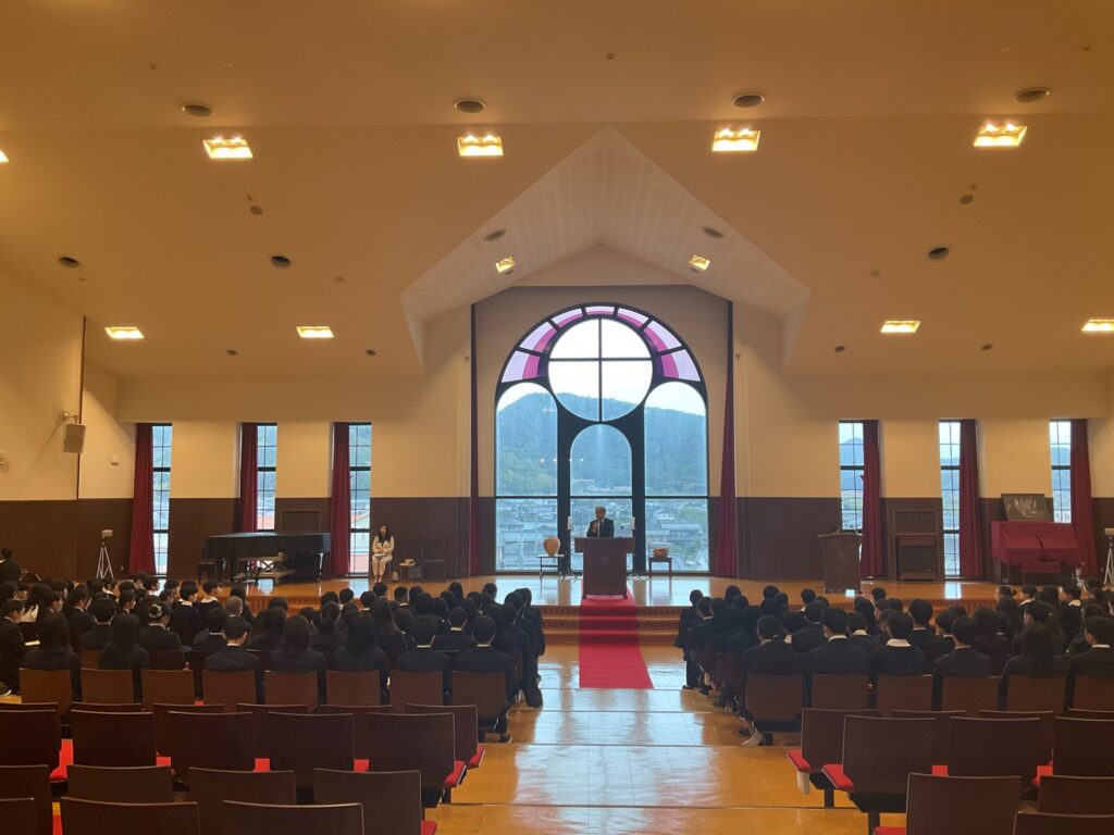 4月7日(火)、いよいよ新年度の学校生活が始まりました。新入生を迎える前の始業式。ひとつ上の学年に進級した生徒たちは、良い緊張感をもって礼拝に臨みました。校長先生からは、①自分をコントロールする力、②自分を知り、信じる力、③さまざまな人と協力する力を身につけてほしいというお話がありました。また、新しい生徒会長によって、生徒会役員の役職が紹介され、礼拝堂は激励の拍手に包まれました。生徒と教員、それぞれが新しい気持ちで今日を迎えることができました。今年度も、たくさんの学び、笑顔、感動が生まれるのでしょう。物事を自分たちの納得のいく方向へ導きながら、全員の力で一緒に良い学校をつくっていきましょう!
