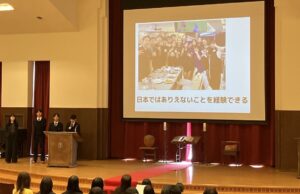 1日14日(火)朝の放送礼拝にて留学帰国報告がありました。今回は、「官民共働海外留学…