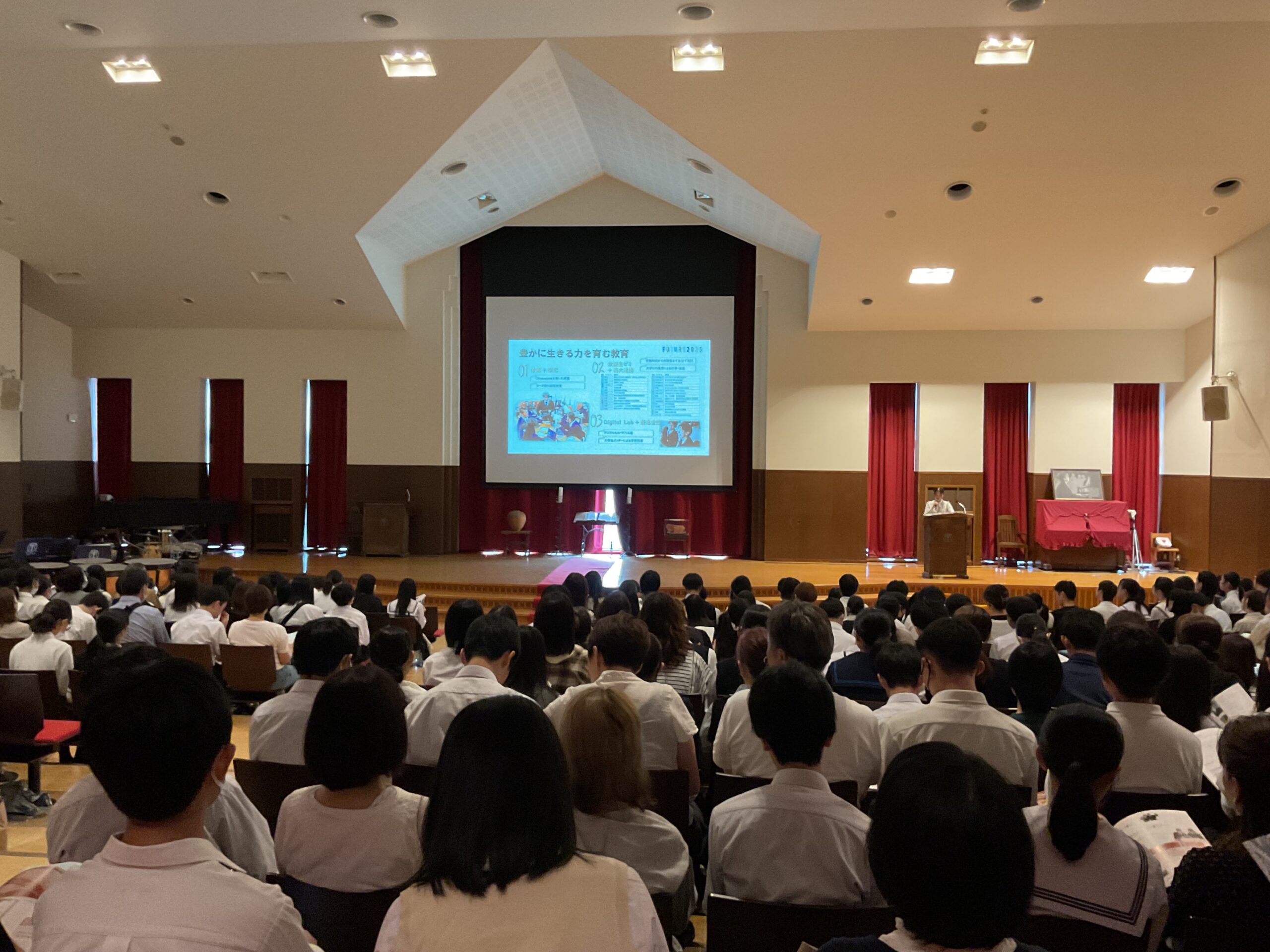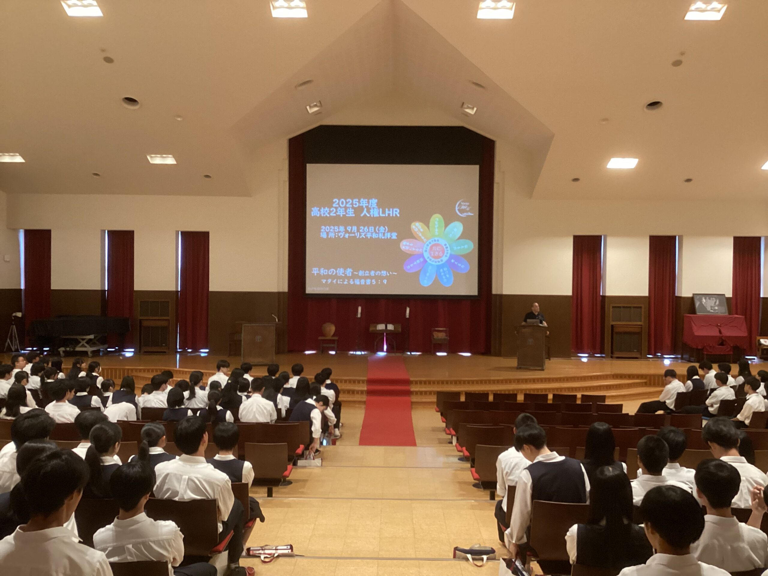 9/26(金)2/3限に2年生の生徒がヴォーリズ平和礼拝堂にて、人権統一LHRに参加…