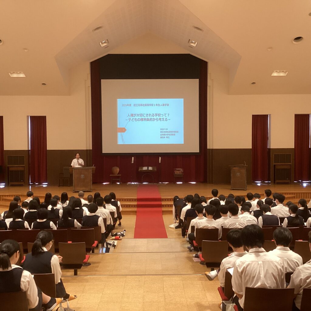 9/25(木)2/3限に1年生の全コース(ICC,ASC,GLC,HNC)の生徒がヴォーリズ平和礼拝堂に集まり、人権統一LHRを実施しました。