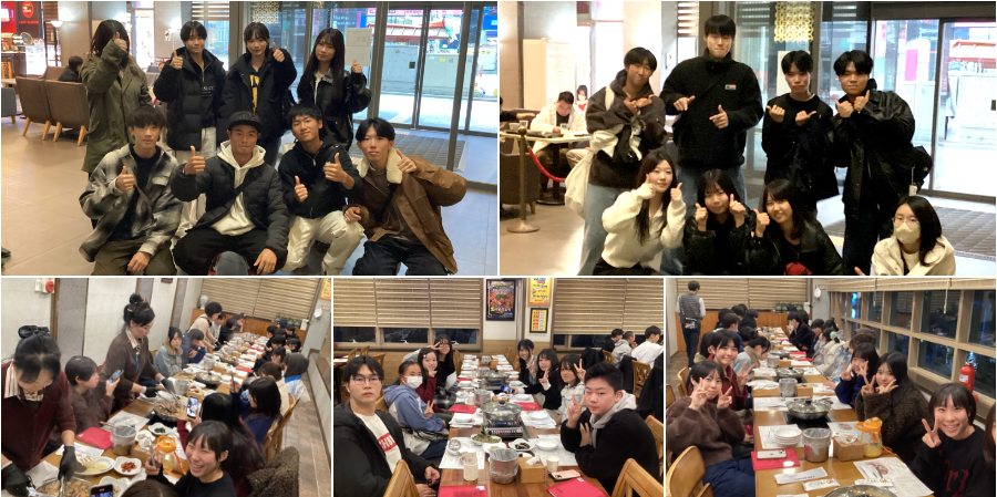 夕食は海鮮鍋を食べました。海鮮といえば、日本と思っていたのですが、釜山は港町という事で新鮮な魚介類がふんだんに入ったとても立派な海鮮鍋を頂きました。生徒たちは「もうお腹いっぱいで食べられない」と言いながらも、笑顔で箸を進めていました。
