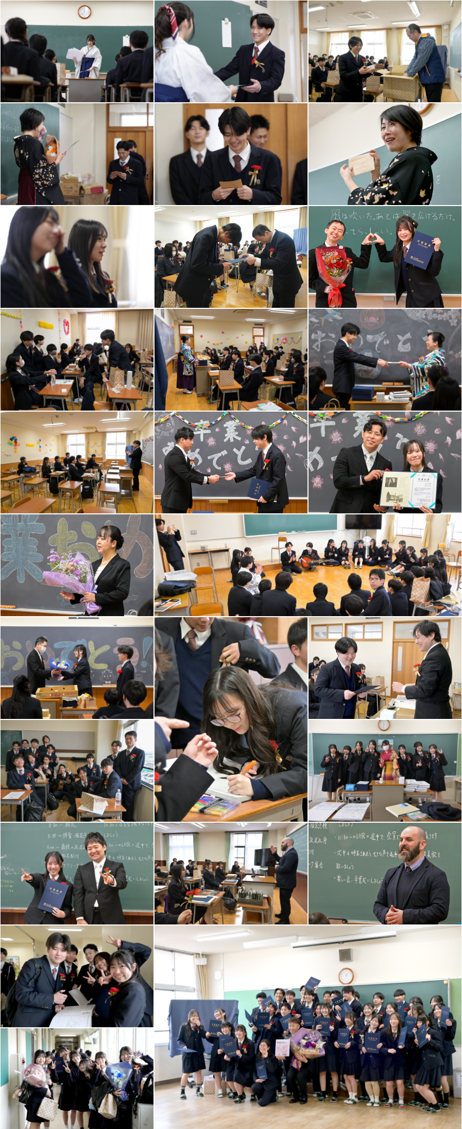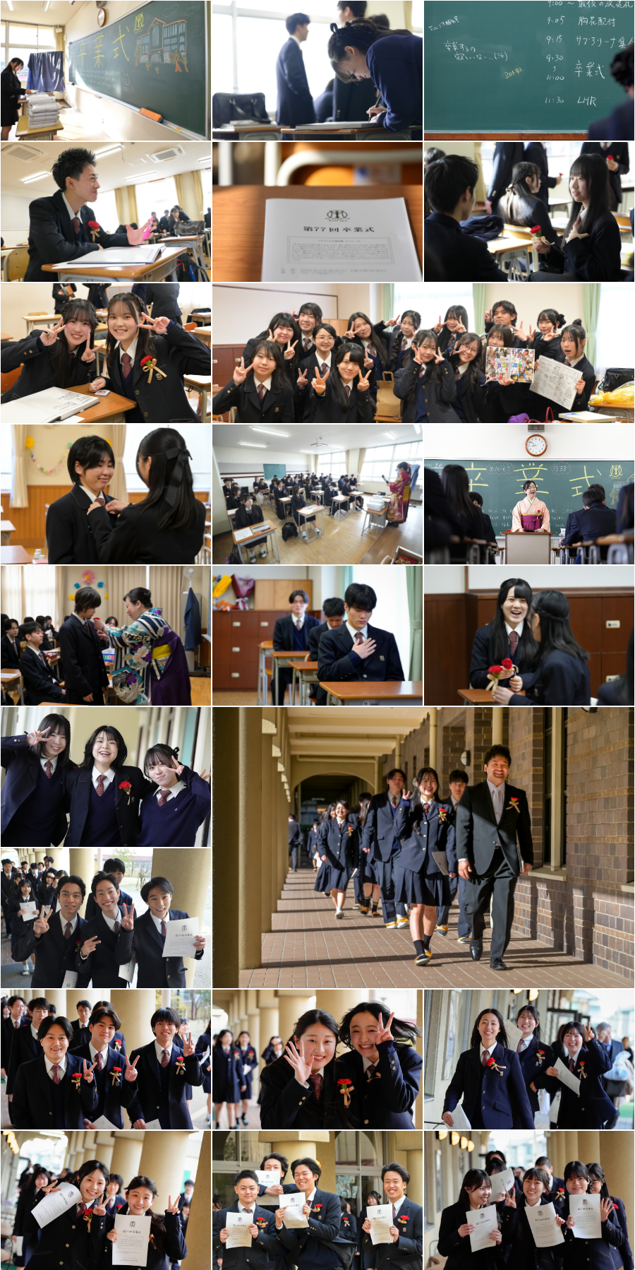 2月28日(土)第77回卒業式が行われました。今年は351名が卒業証書を受け取りました。担任が呼名をするとき、卒業生の返事がとても素晴らしく、この3年間をどのように過ごしてきたか伝わってきました。卒業生を代表し4名の生徒が答辞を述べました。この3年間の出来事、気持ちの変化、そして将来の夢を語ってくれました。最後は、讃美歌405を歌いながら、教師、保護者、在校生代表に見守られながら式を終えました。最後のLHRは、クラスメイト、担任への感謝を表しながら過ごすことができました。これから学園を出て、新たな世界へ進んでいきます。
