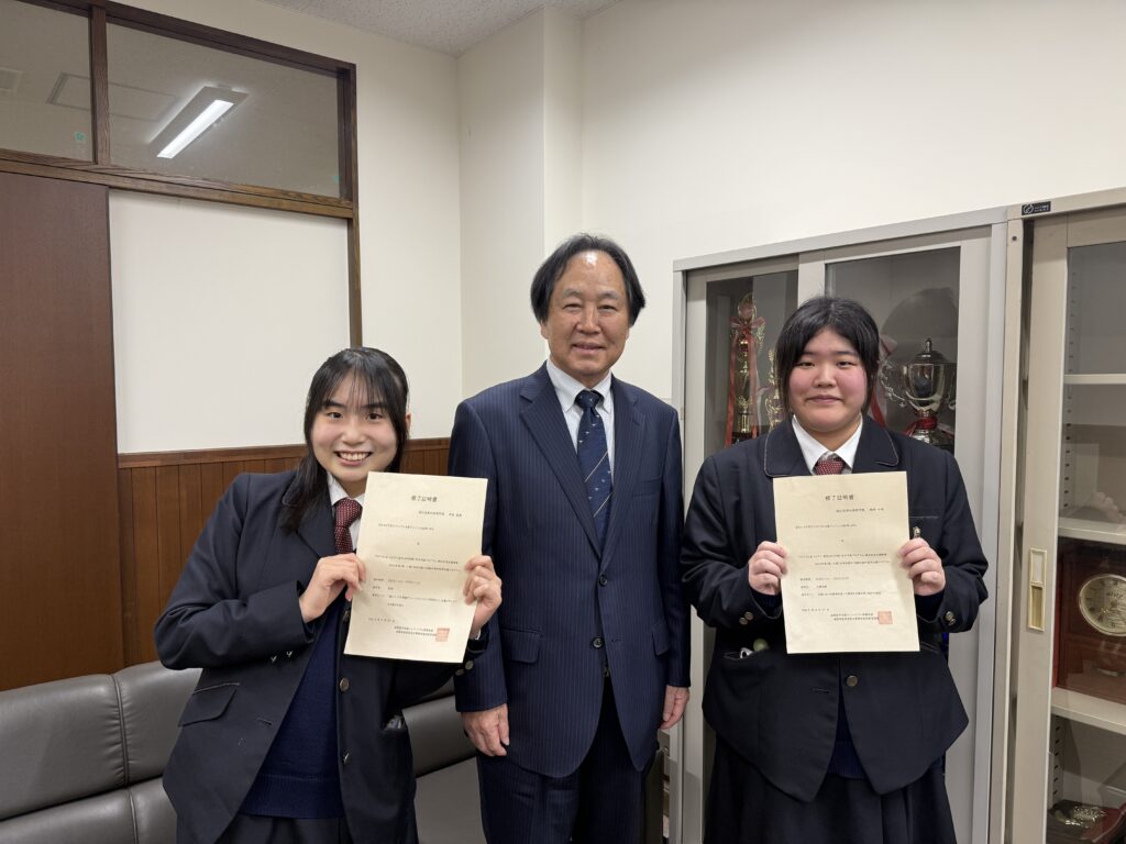 4月10日(金)に本校からトビタテ留学JAPANに参加した生徒の修了書を渡しました。昨年の春から活動を始め、留学に参加して自分のテーマの探究活動を行ってきました。留学後も自分の成果報告や研修会など多くのイベントに参加し、この春に無事すべてのプログラムが修了しました。これからもまだ後輩たちがトビタテ留学JAPANに参加する予定なので、後輩たちに先輩としての経験を伝えていってほしいですね。今後の活躍に期待しています。