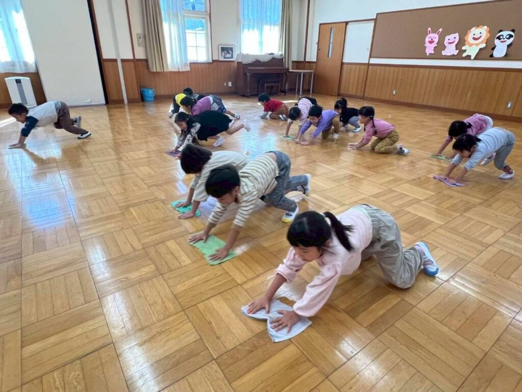 一日過ごしたホールをみんなで掃除をしました。