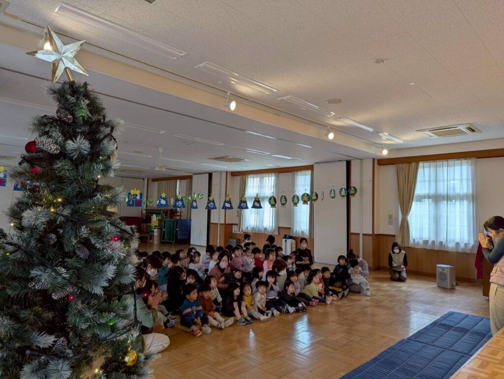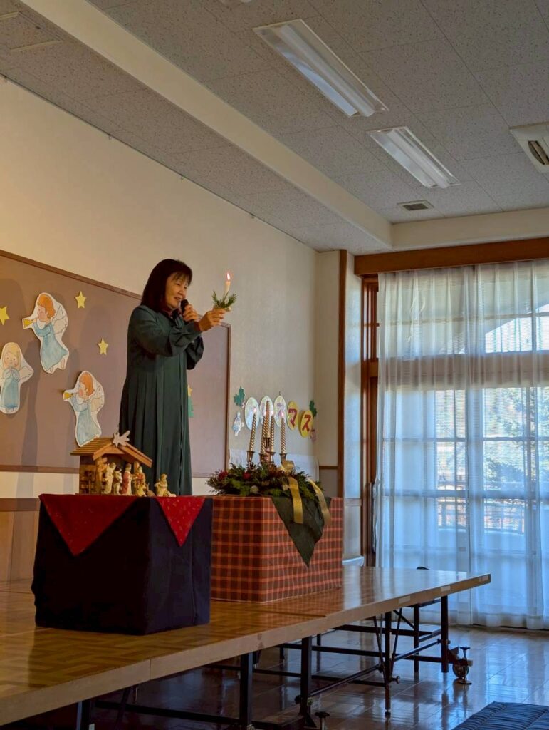 ろうそくの灯りを不思議そうに眺めたり、簡単なクリスマスの歌を嬉しそうに歌ったり、先生たちからのクリスマスのお話に興味を示したりと、五感でクリスマスの雰囲気を楽しむ姿がみられました。