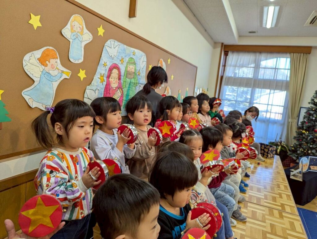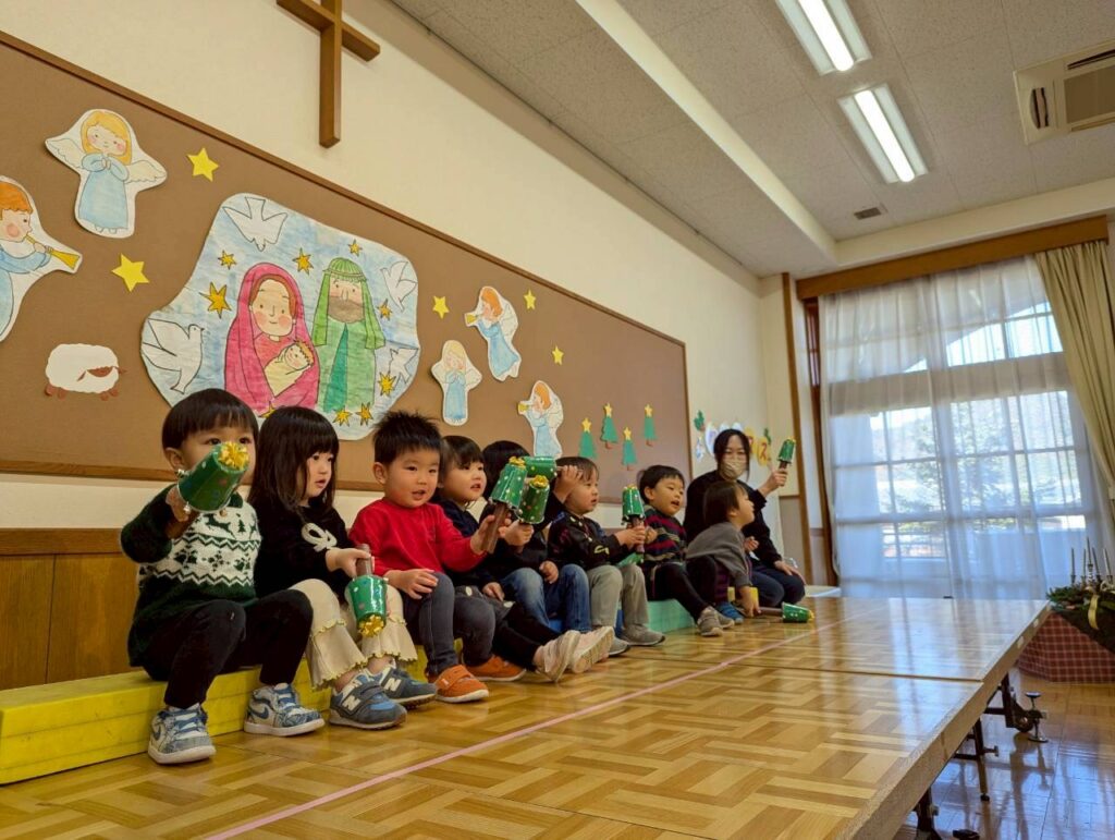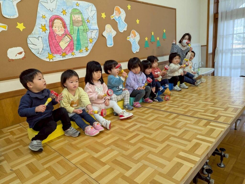 12月16日、0歳児から5歳児の子ども達が集まって、乳児クラスの「クリスマス礼拝」をしました。