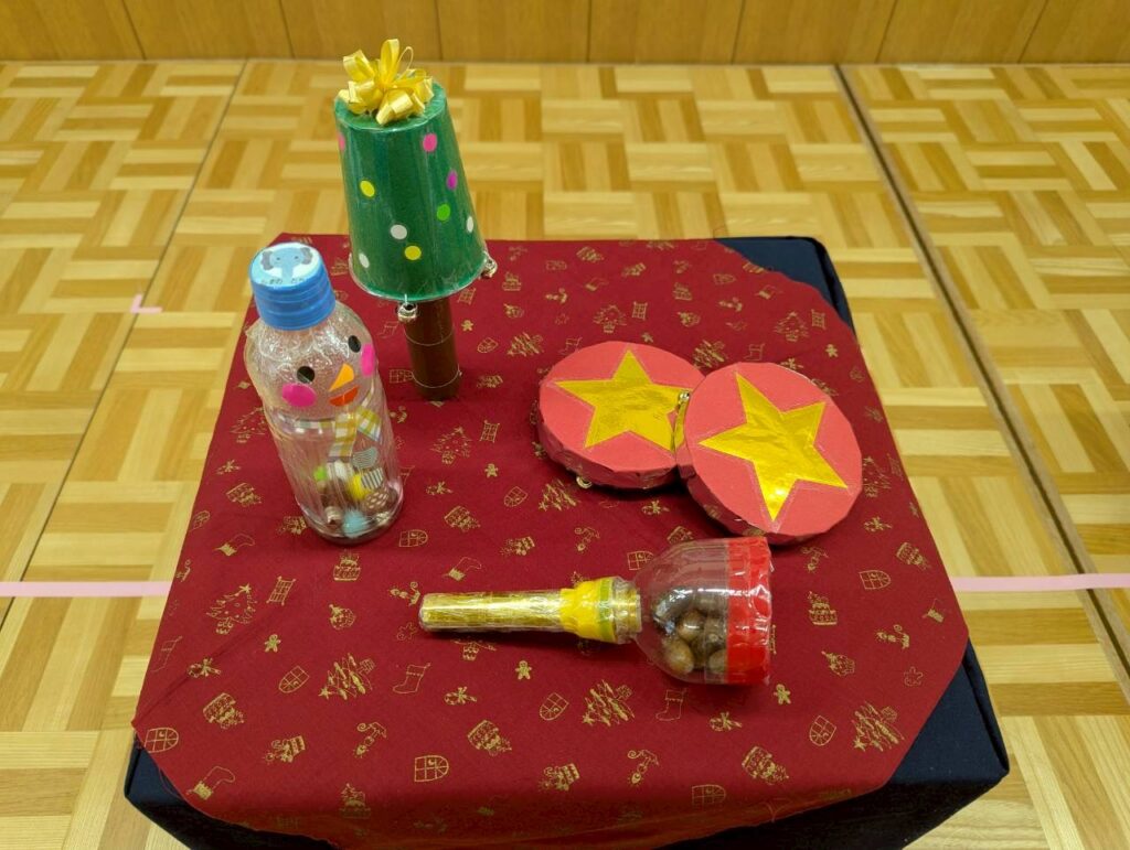 子ども達が作った、手作りの楽器を鳴らし、可愛い声で歌も披露してくれましたよ。