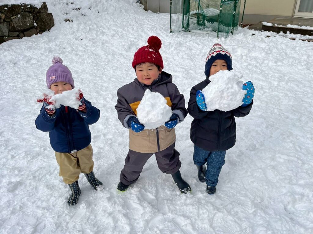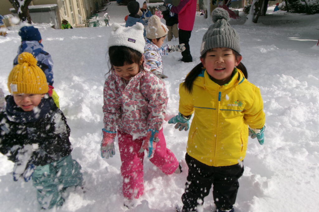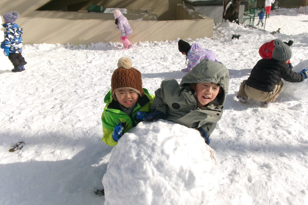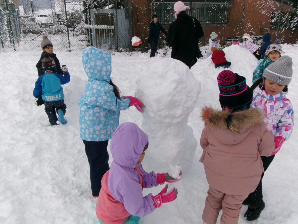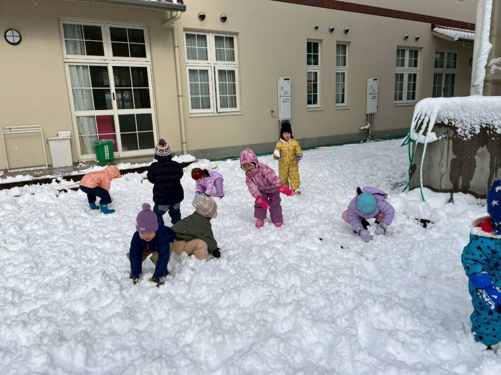 幼児クラスの子ども達は、ダイナミックに雪遊びを楽しんでいました。