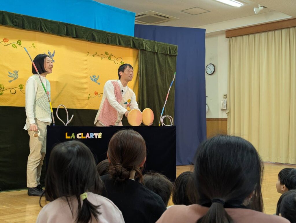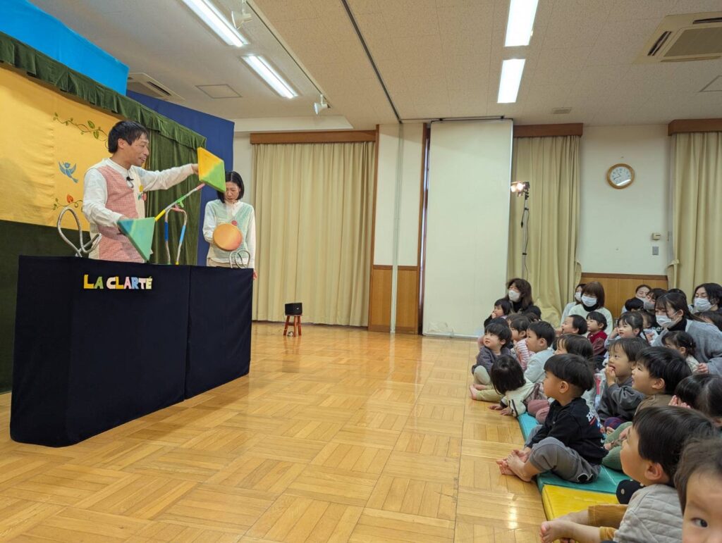 今日、ひかり園に人形劇団「クラルテ」さんが来られ、子ども達に楽しいお話をしてくださいました。